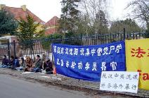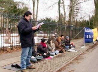 丹麦法轮大法学会代表用丹、中两种语言,在中使馆前宣读这一中共罪行,呼吁中使馆内工作人员,认清邪党本质,早日唾弃这个无恶不作的邪党,投奔光明。