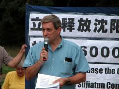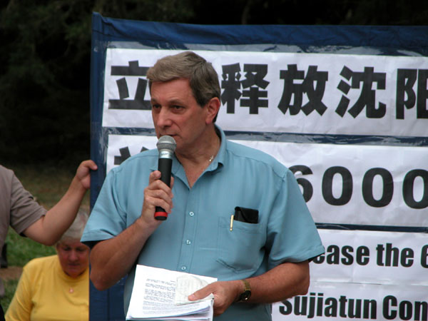 来自悉尼的法轮功学员代表 Geoff Gregory宣读了澳洲法轮大法协会的声明。声明中描述这种恐怖的暴行,形同二战时纳粹在奥斯维辛(Auschwitz)集中营里集体灭绝犹太人的暴行。该声明中并呼吁澳洲政府与各界对这个骇人听闻的暴行进行调查。