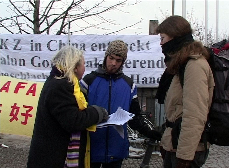 一位警察看到绝食的学员,过来对一位学员说:“我很关心他们的安全,你能告诉我究竟发生了什么事吗?”学员从共产党的邪恶本质开始,一直讲到苏家屯秘密集中营事件。这位警察先生一边听,一边反复的说:“真可怕!很恐怖!为什么会这样?为什么中国允许这样的事情发生?”