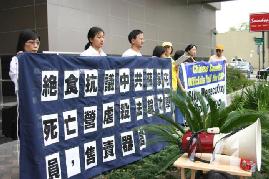 另外,在美国首都华盛顿的法轮功学员周四开始在白宫附近的公园进行四十八小时静坐抗议,要求美国政府向中共施压,调查有消息指在沈阳郊区的苏家屯有一个专门关押法轮功成员的秘密集中营的事件。发言人王涛对本台表示这次活动的目的是敦促美国政府向中共施压要求他们调查此宗骇人听闻的事件,同时希望美国政府和联合国一起进行一个国际调查。