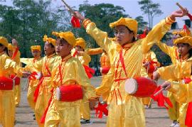 当天上午九时许,这支腰鼓队从新营市中山公园一路打着鼓前进到新进国小。前导的三个大字“真、善、忍” ,之后是几位手捧莲花的小仙女,以“大法洪福常伴善良人”的标语吸引沿路许多人惊喜的眼神,许多人笑着拿起了相机,拍下小弟子们天真无邪的击鼓画面。