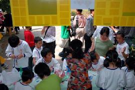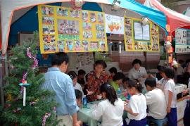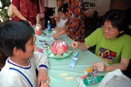 法轮功学员在园游会的展位上,教来宾制作代表修炼者圣洁的纸莲花,展位周围挤满了小朋友和家长们,一旁电视机播放“悠游字在”等影片,吸引小朋友的目光。学员也利用教导摺纸莲花的时间讲述法轮功真相,校庆活动在下午四时圆满结束。