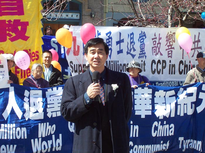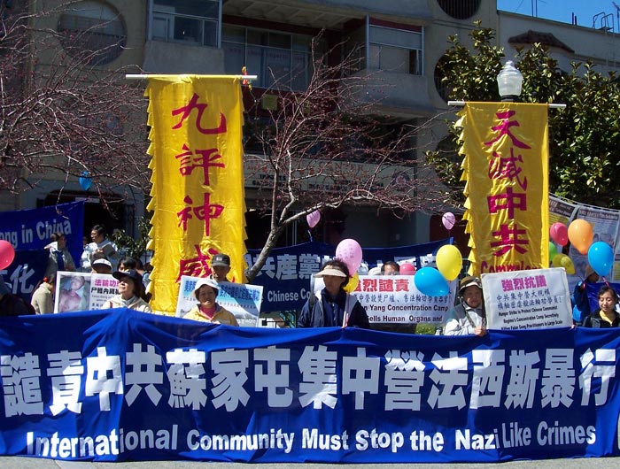 【明慧网2006年3月20日】(明慧记者黄凯莉、王英旧金山报导)3月18日中午,旧金山湾区法轮功学员和各界人士,在旧金山中国城花园角集会,同声谴责中共“苏家屯集中营”的群体灭绝罪行,并声援中国大陆九百万人退出中共。与会者表示要共同抗暴,终结迫害。