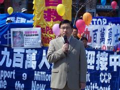 全盟北加州支盟共同主席王龙文表示,中国是一个有5千年历史文化的古国,世界四大古国之一,人民勤劳,爱好和平。现在会发生这种惨绝人寰的苏家屯法西斯暴行,归根到底是中共搞独裁统治,中共不尊重人类的普世价值--自由、民主、人权,要恢复人民的尊严,一定要消灭中共的独裁体制。