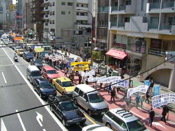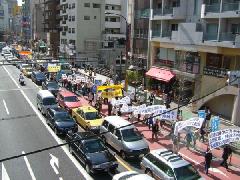 【明慧网2006年3月22日】2006年3月19日,来自东京和周边地区、甚至远自宫城县、北海道的在日华人和日本民众,聚集在东京的惠比寿公园,声援900万勇士退出中共,谴责中共在沈阳苏家屯设立秘密集中营,虐杀法轮功学员、活体摘取器官非法牟取暴利的兽行。集会后游行至中共驻日大使馆附近公园,部份集会游行参加者继续在中使馆前展开横幅谴责中共。