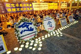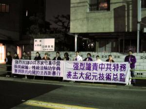 2006年3月21日晚,日本法轮功学员在中共大使馆前,烛光守夜悼念同修、谴责中共活体摘取法轮功学员器官出售牟利,随后焚尸灭迹的兽行。