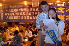 鉴于近日苏家屯集中营的内幕陆续得到证实,香港法轮功学员昨日趁立法会开会期间,在立法会大楼外进行绝食静坐请愿活动,并向前来开会的立法会议员递交公开信,要求关注苏家屯惨案;入夜后,法轮功学员移往遮打花园举行烛光悼念晚会,追悼被中共虐杀的法轮功学员,包括在苏家屯集中营被杀害的数千名不知名的学员。