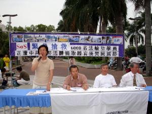 震惊于中共在辽宁省沈阳市苏家屯区竟设有关押6000名法轮功的集中营,并活体摘取学员器官贩售图利,22日下午5点10分,屏东法轮功学员在县政府文化局前的广场上,举办“苏家屯事件烛光悼念会”,以万分沉痛的心情表达内心的哀伤与震撼,并以“道德良知”呼吁各界发挥正义,共同谴责中共惨无人道的迫害,制止法西斯邪灵再现,遗祸人类。