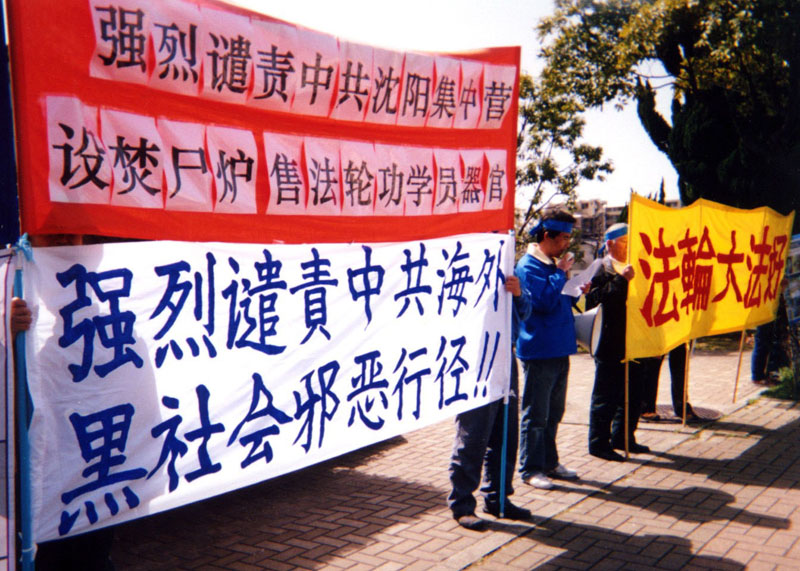3月20日,20多名来自日本广岛和福冈的法轮功学员聚集在福冈中领馆前進行了强烈的绝食抗议活动,抗议震惊中外的沈阳苏家屯集中营对法轮功学员進行活人切取脏器,然后焚尸灭迹的法西斯行为。学员们接力向中领馆喊话:揭露沈阳苏家屯集中营将活人(法轮功学员)取出脏器然后卖给外国人,然后将法轮功学员焚尸灭迹的法西斯暴行。到目前为止,已有900万中国人退党,希望中领馆的官员在明白真相后,尽早脱离中共,恢复人的本性良知。
