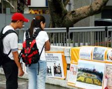 人们在了解真相签名声援制止中共暴行台湾新竹地区的法轮功学员,2006年3月26日,为谴责中共苏家屯集中营虐杀法轮功学员并盗卖器官事件,在市中心举办「SOS紧急抢救数千法轮功学员遭中共盗卖器官」活动。