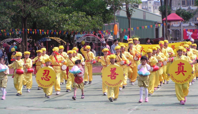 师:你想听我就给你说说。(鼓掌)大家知道乐团上次在纽约的唐人街、法拉盛游行时,我都看到了这个景象:当乐团演奏的时候,放出的能量相当大。无论从能量的放出,还有你声音的放出,还有音乐、音符的本身,都在起着证实法、起着放射能量的作用。