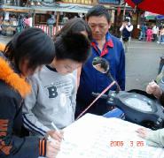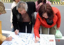 还有几十个人看到展板不等学员解说就围上来争着签名,被挡在后面的小姐只得高举着伞大叫:“帮我签一个!帮我签一个啊!”赶时间上游览车的游客,匆匆忙忙拿着资料就走了,在车子发出前,又急急的转还回来征签点签名!