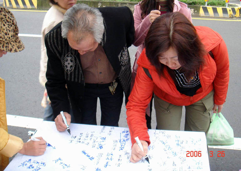![]() 全家来签名声援正义,谴责中共恶行 | ![]() 就算淋湿了也得签个名 |