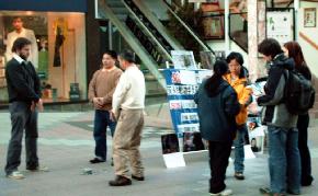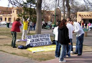 2006年3月25日,来自美国新墨西哥州圣塔菲、阿尔伯克基和洛斯阿洛莫斯的法轮功学员在圣塔菲市的著名旅游景点—圣塔菲广场举办了揭露中共邪党在苏家屯集中营血腥罪行的活动。