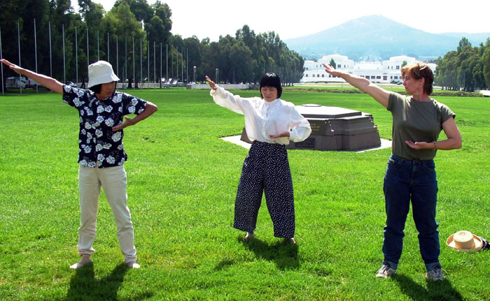 一位名叫丽莎的妇女,听完学员介绍后,立即签名抗议迫害,并马上加入举横幅的行列,她说:“用反酷刑演示方式,让澳洲政府了解在中国发生的事,尽管揭露出来的只是冰山一角,但我认为这样的方式非常好。”然后她很认真的学炼了五套功法才离去。