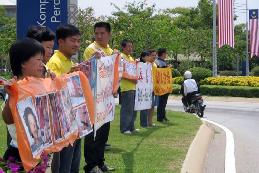 法轮功学员在首相署前的主要公路旁,拉开“法轮大法好”、“停止迫害法轮功”和“贾庆林在国外以酷刑罪被起诉”等横幅,等候贾庆林的座车经过,向他抗议中共迫害法轮功。在法轮功学员举起横幅抗议后不久,贾庆林的座车就经过了抗议地点。法轮功学员表示,他们以后会向每个到马访问的曾参与迫害的中共官员抗议中共迫害法轮功。