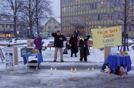 2006年1月30日,法轮功学员在瑞典小镇莱蓉市举办了庆祝第四届法轮大法日的活动。