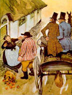 这样,他们就交换了。栅栏旁的那个收税人得到了鹅;这个庄稼人带走了鸡。