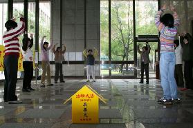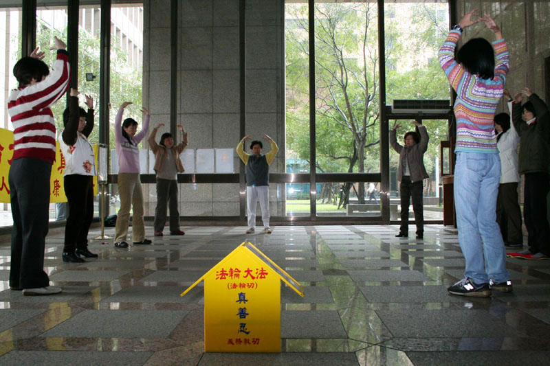 台湾台北中央联合办公大楼炼功点的法轮功学员于2006年3月1日中午举办炼功洪法活动,向大楼内、外上班的同仁及前来洽公的民众发送真相资料,并介绍法轮功之美好与洪传世界概况。