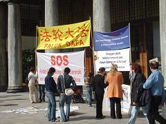 一对德国来的游客告诉学员,他们上个星期在香港旅游时,也看到了法轮功学员举行的关于揭露苏家屯集中营的活动。一位当地居民听到学员的讲解后,当时就表示中国是不能去了。