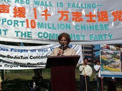 在集会上发言的还有越南悉尼广播电台负责人宝康女士、已公开宣布退出中共的前中领馆官员陈用林、刚出逃至澳洲不久的民运人士冯海光先生、西藏团体代表以及原澳洲民运领袖杨军、中国问题研究学者陈弘莘等。