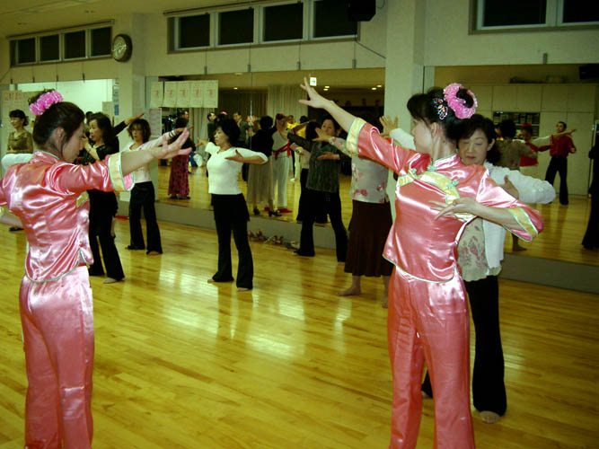 最后,学员们还表演了中国的“扇子舞”,获得了舞蹈班师生们的热烈鼓掌。在道别时,学员们把日文版的教功录像带送给了那位舞蹈老师,他特别的高兴,希望今后有机会再见。