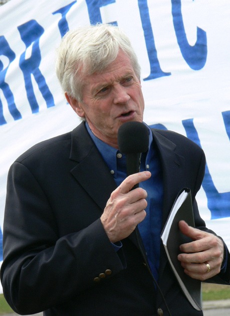 前加拿大外交部亚太司司长大卫-乔高(David Kilgour)在外交部前发言。