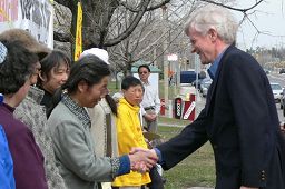 大卫-乔高(David Kilgour)和法轮功学员一一握手