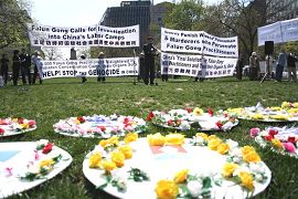 【明慧网二零零六年四月十五日】(明慧记者李静菲报导)2006年4月13日中午,数十名法轮功学员在美国首都华盛顿法瑞格特广场集会,抗议中共在沈阳苏家屯集中营被曝光后销赃灭迹,继续愚弄和欺骗国际社会的罪行,同时呼吁美国总统布什、国际社会、媒体与“调查真相委员会”,赴大陆进行独立、直接、不受干预的调查和取证,制止虐杀,紧急营救正在中国遭受群体灭绝迫害的法轮功学员。
