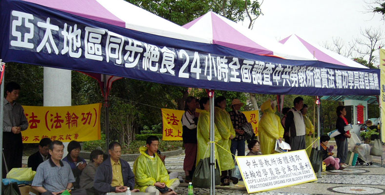 一位民众在知道了中共虐杀法轮功学员,摘取器官牟利并毁尸灭迹的残暴真相后,看着在雨中静坐的学员,不停的摇着头说:“难怪连天公也在流眼泪。”