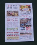 ![]() 张贴在食品街报栏上的不干胶《大纪元郑重声明》和三退签名单,供购物者签名 |