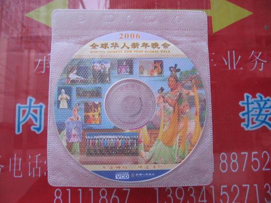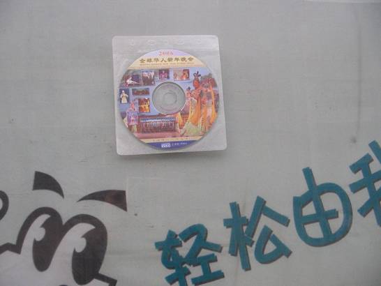 ![]() 贴在奶生堂社区住户门上的光盘《2006年全球华人新年晚会》 | ![]() 贴在奶生堂社区住户门上的光盘《2006年全球华人新年晚会》 |