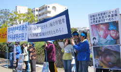 2006年4月16日,来自日本鹿儿岛、熊本、广岛和福冈的部份法轮功学员在福冈中领馆前集会,与亚太九个国家和地区同步绝食抗议中共劳教所迫害法轮功学员的暴行,并呼吁国际社会紧急调查。