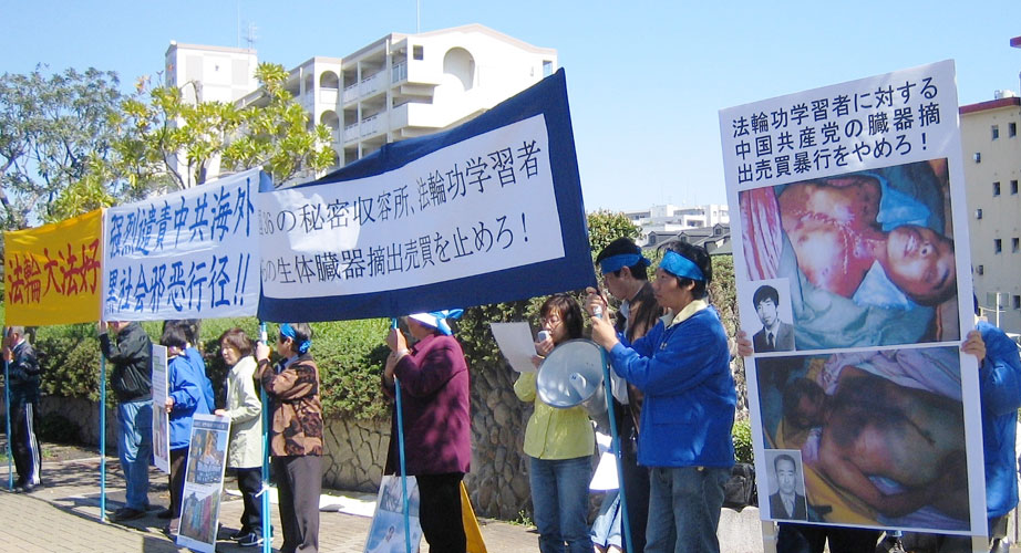 抗议当天,有很多过往的车辆和日本民众,有些人主动过来了解真相,看展板和传单。在了解到中共把信仰“真,善,忍”的好人关在监狱和劳教所,并活体摘取器官以牟取暴利后,日本民众感到非常气愤和震惊,纷纷询问能做些什么,来制止中共的这种法西斯暴行。