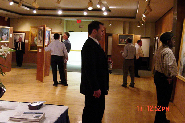 展出地点位于繁忙的州府办公楼内的一间宽敞的会议厅,前来参观画展的人络绎不绝。人们在为艺术作品的境界与内涵所感叹的同时,更了解了在中国发生的这场浩劫。对中共迫害法轮功学员的令人发指的残酷手段,善良的人们感到震惊,简直无法相信,在当今的世界上,仍发生着如此血腥的迫害。