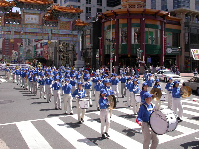 “天国乐团”军乐队也特地从纽约赶来参加了今天的游行。乐团成员韩先生说:“在游行过程中,我感动得哭了。想到那些在中共劳教所、集中营中受迫害的法轮功学员,能在这里为他们尽一份力,我很感动,尽管游行很长很累,我一直在尽我的心力吹奏着,愿我们的号声能唤醒更多的人。”