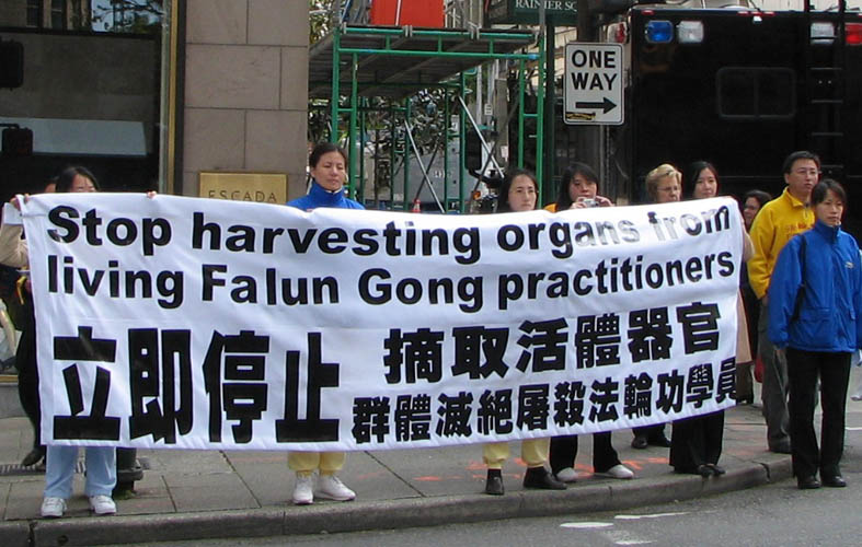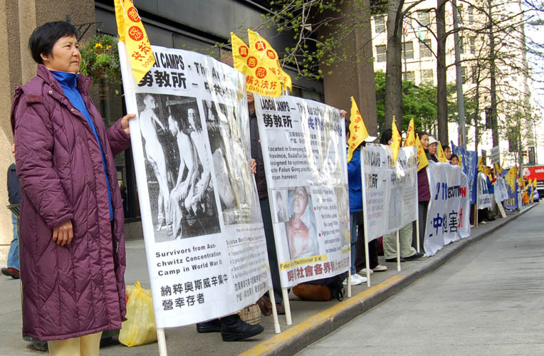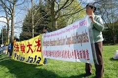 来自温哥华的法轮功学员苏表示,来此抗议是要让胡知道:中共迫害法轮功,设立集中营活体摘取法轮功学员器官焚尸灭迹等暴行,是不能被容忍的。同时,法轮功学员要求中国开放所有关押法轮功学员的劳教所、监狱、和医院,让“调查真相委员会”去那儿,进行全面调查法轮功受迫害的情况及取证。