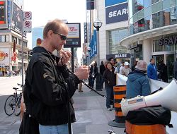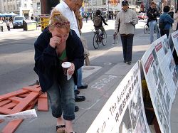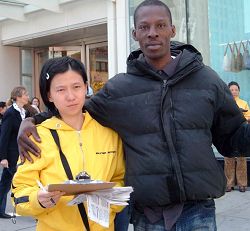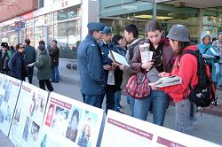 ![]() 游行队伍呼吁紧急营救在中共劳教所面临灭口的法轮功学员 | ![]() 法轮功学员向过路人讲真相 |