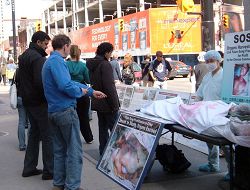 ![]() 在集会上模拟演示中共活体摘卖器官 |