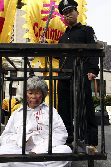 【明慧网2006年4月2日】(明慧记者王英旧金山报导)沈阳苏家屯设秘密集中营,非法关押六千余名法轮功学员,以活体摘除法轮功学员器官出售的血腥黑幕曝光后,旧金山法轮功学员于4月1日中午,在联合广场举行集会,呼吁美国及世界各国政府关注这场迫害的严重性和残暴程度,立即制止中共对法轮功团体灭绝人性的杀人暴行。