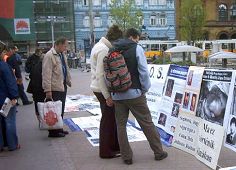 自从中共盗取法轮功学员器官并焚尸毁迹的黑幕被首次曝光于海外后,德国各地的法轮功学员展开了紧急营救活动,让广大民众了解法轮功在中国遭受迫害的严酷事实,同时也呼吁国际社会共同查证中共的罪恶。