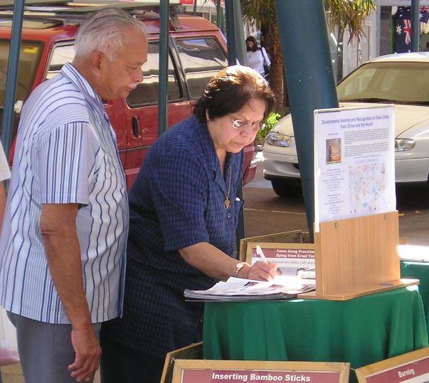【明慧网2006年4月21日】澳大利亚新南威尔士州的坎伯塘市位于悉尼市中心西南方大约60公里。近一段时间以来,在各火车站、市商业中心等地往来的民众惊讶的看到和听到当地法轮功学员在这里频繁举办活动,揭露中共近七年来残酷迫害法轮功的真相。尤其最近被大量披露的中共集中营和劳教所里活体摘取法轮功学员器官、焚尸灭迹的邪恶罪行,引起人们的震惊和关注。