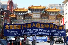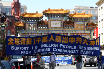 在欢迎队伍中还有另一个情景,即使法轮功学员为这些人读《九评》,他们虽然不语,但可看出来他们很认真的听着,因本来他们脸上带着怒气与学员交谈,但听了一会儿,脸上表情缓和了,也会和学员打招呼,尤其是学生较单纯,许多人当场用化名退了少先队。