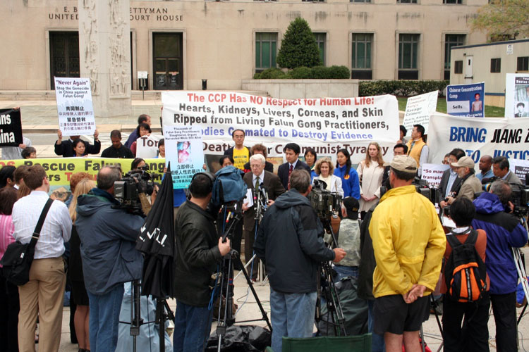 法庭外的新闻发布会由美国华盛顿人权律师泰瑞•玛什博士主持。玛什说,“谈到王文怡博士和今天发生的事情,如果离开了在中国发生的迫害法轮功,离开了普遍发生的从法轮功学员身上活体摘取器官,并将他们投入焚尸炉;就好象谈到马丁路德金,而不谈到人权运动;就好象谈到甘地,而不谈到非暴力不合作运动。就好象谈到露丝帕克,而不解释种族隔离。”