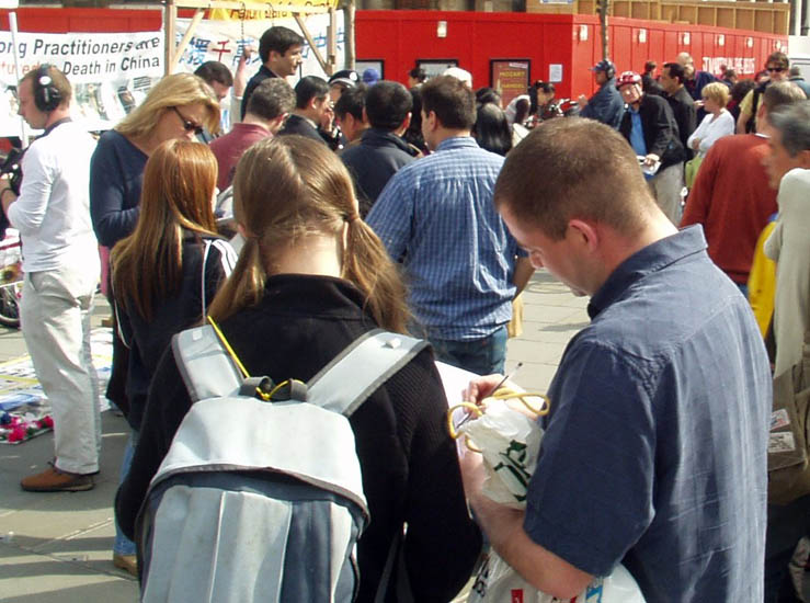 ![]() 模拟演示揭露中共盗器官罪行 | ![]() 人们签名呼吁调查中共罪行 |