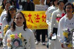 ![]() 游行队伍经过中国城 | ![]() 悼念被迫害致死的同修 |
