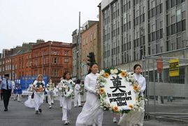 2006年4月22日,爱尔兰法轮功学员在爱尔兰首府都柏林的帕奈而广场集会游行,抗议中共活体摘除法轮功学员器官并焚尸灭迹的暴行,同时声援千万人退出中共。
