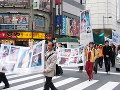 揭露迫害的图片队列行進在池袋闹市区要求立即调查中共虐杀法轮功学员黑幕2006年4月23日下午,日本200多位各界人士在首都东京举行集会游行,声援千万勇士退出中共及相关组织,同时抗议中共活体摘取法轮功学员器官、牟取暴利,呼吁国际社会制止中共对法轮功学员的迫害。
