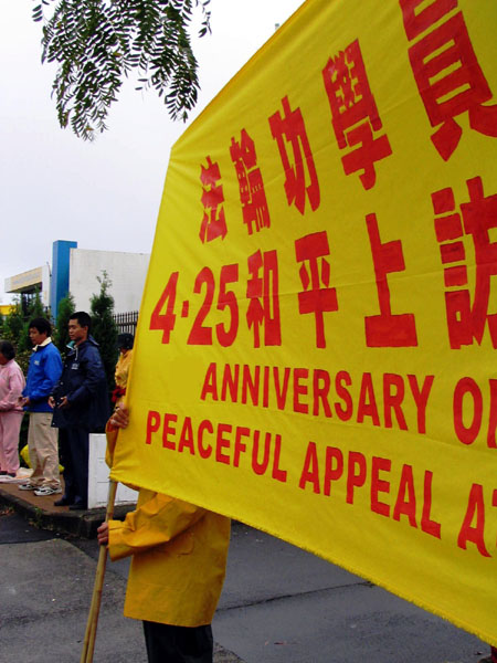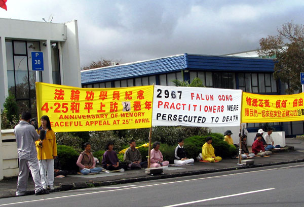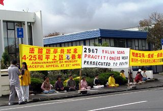 【明慧网2006年4月26日】2006年4月25日,新西兰奥克兰法轮功学员在奥克兰中领馆前纪念4.25和平上访七周年,并呼吁社会关注并共同制止中共对法轮功的残酷