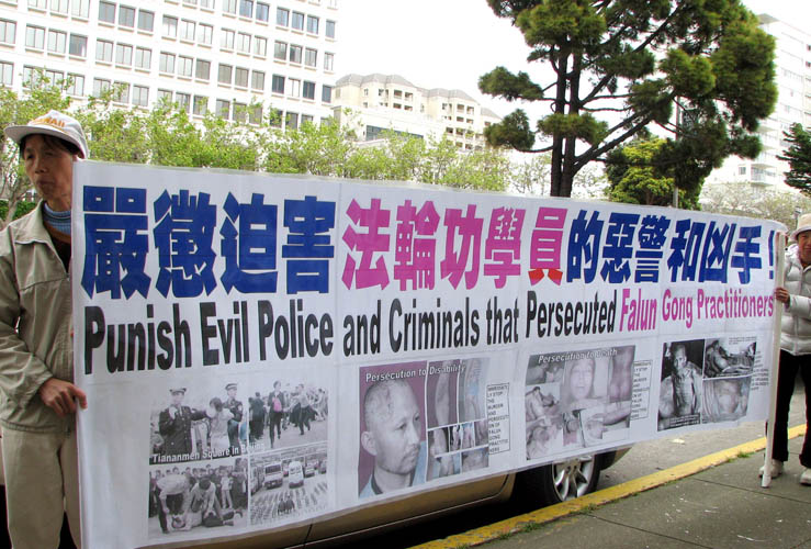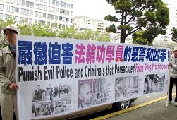 【明慧网2006年4月26日】(明慧记者黄凯莉旧金山报导)2006年4月25日,“4•25”七周年日下午,“调查真相委员会”成员前来中共驻旧金山总领事馆申请签证,要求进入中国全面调查法轮功学员受迫害的真相及取证。与此同时,湾区的法轮功学员在领馆外集会,揭露在过去七年里,中共劳教所酷刑折磨、活体摘除法轮功学员器官等滔天罪行,并呼吁制止迫害。